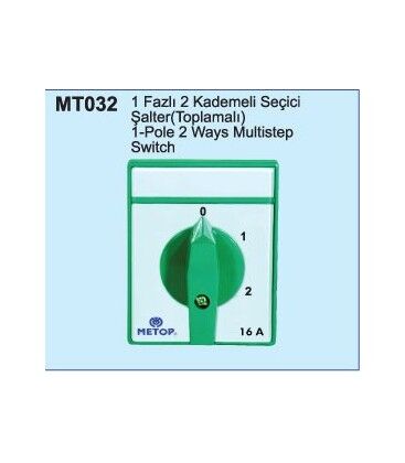 Metop MT032 16A 1 Faz 2 Kademeli Seçici Komütatör Şalter, güvenilir performansı ve uzun ömürlü yapısıyla elektrik sistemleriniz için mükemmel bir çözümdür.